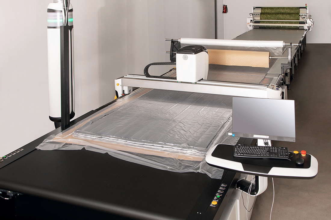 Данное решение обеспечивает высокую скорость и качество настила из любых типов материалов с последующим перемещением его в зону непосредственно раскроя.